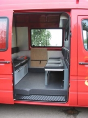 | Auf- und Ausbau des Fahrzeuges: | Orginal- Konstruktion mit Hochdach | ||